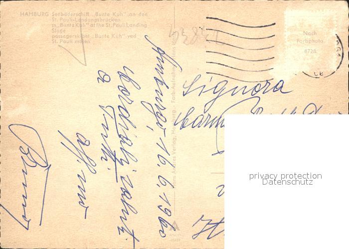 alte Postkarte Schiffe Ships Navires Bunte Kuh Hamburg St. Pauli-Landungsbruecken postalisch gelaufen Erhaltung siehe scans