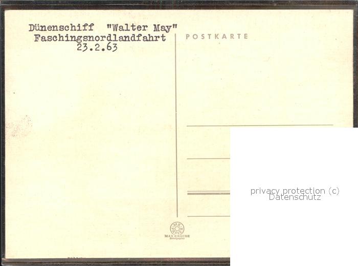 11547348 Schiffe Ships Navires Dünenschiff Walter May Faschingsnordlandfahrt Zeichnung KatCode 22480000000800