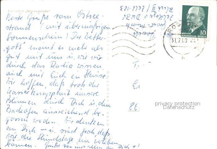 alte Postkarte Schiffe Ships Navires Faehrschiff Warnemuende postalisch gelaufen Erhaltung siehe scans