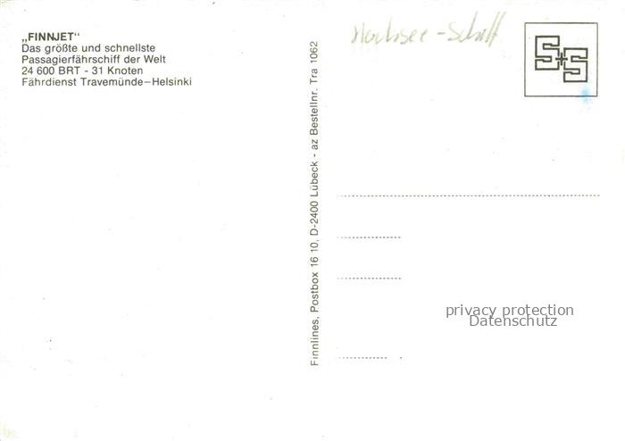 74051370 Schiffe Ships Navires Hochseeschiffe Finnjet Travemuende Helsinki postalisch nicht gelaufen Erhaltung siehe scans [SanaeD93] KatCode: 22480000000800