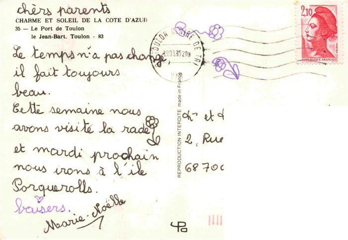 74030688 alte Postkarte Schiffe Ships Navires Jean Bart Port Toulon postalisch gelaufen Erhaltung siehe scans [SanaeD93] KatCode: 22480000000800