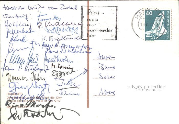 alte Postkarte Schiffe Ships Navires Kungsholm Hamburg ueberseebruecke postalisch gelaufen Erhaltung siehe scans