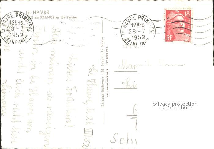 alte Postkarte Schiffe Ships Navires Le Havre Bassins Hafen postalisch gelaufen Erhaltung siehe scans