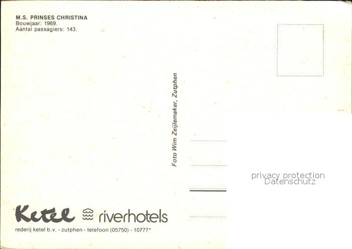 Schiffe Ships Navires M.S. Prinses Christina postalisch nicht gelaufen Erhaltung siehe scans