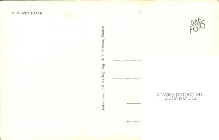 31704762 Schiffe Ships Navires M. S. Westfalen postalisch nicht gelaufen Erhaltung siehe scans KatCode: 22480000000800