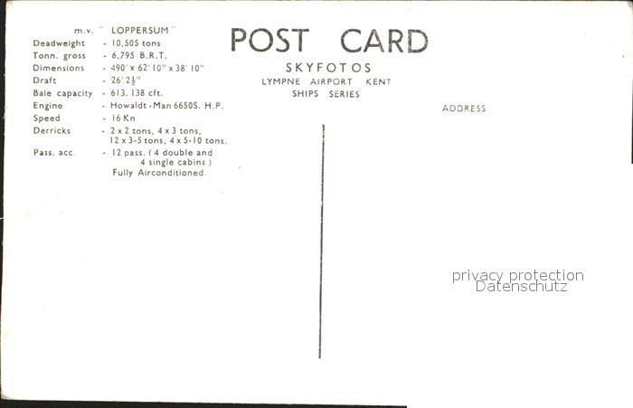 Schiffe Ships Navires M.V. Loppersum postalisch nicht gelaufen Erhaltung siehe scans