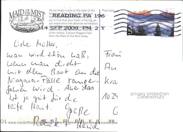 alte Postkarte Schiffe Ships Navires Maid of the Mist Niagara Falls postalisch gelaufen Erhaltung siehe scans