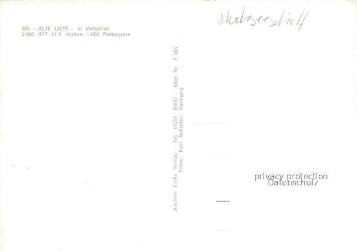 74052039 Schiffe Ships Navires MS Alte Liebe 3800BRT postalisch nicht gelaufen Erhaltung siehe scans [IrynaD87] KatCode: 22480000000800