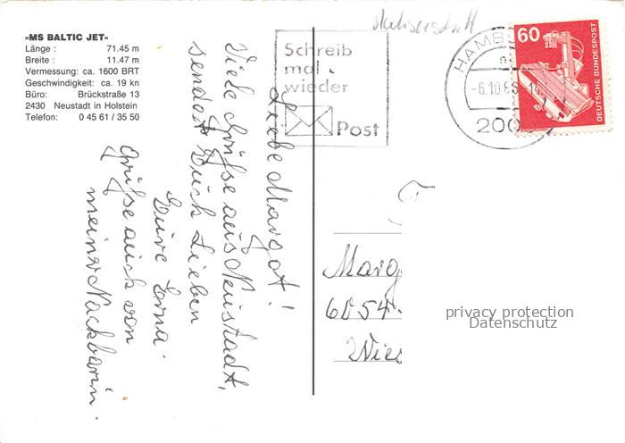 74052123 alte Postkarte Schiffe Ships Navires MS Baltic Jet postalisch gelaufen Erhaltung siehe scans [IrynaD87] KatCode: 22480000000800