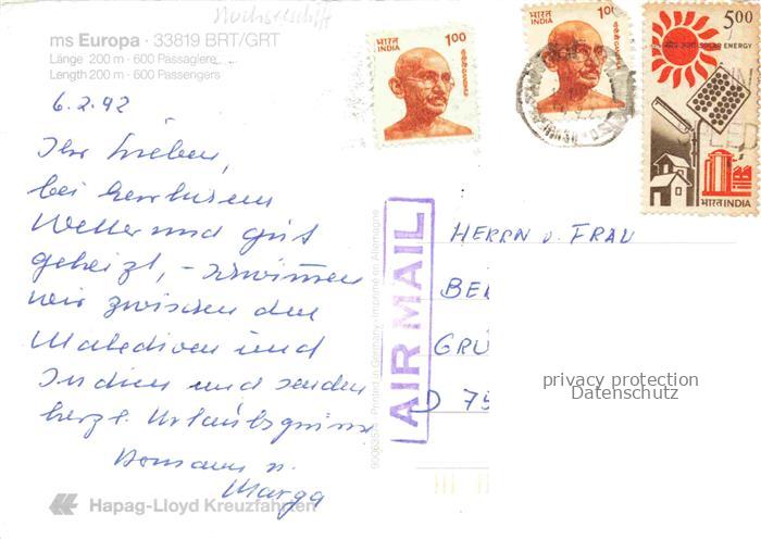 74052145 alte Postkarte Schiffe Ships Navires MS Europa postalisch gelaufen Erhaltung siehe scans [IrynaD87] KatCode: 22480000000800