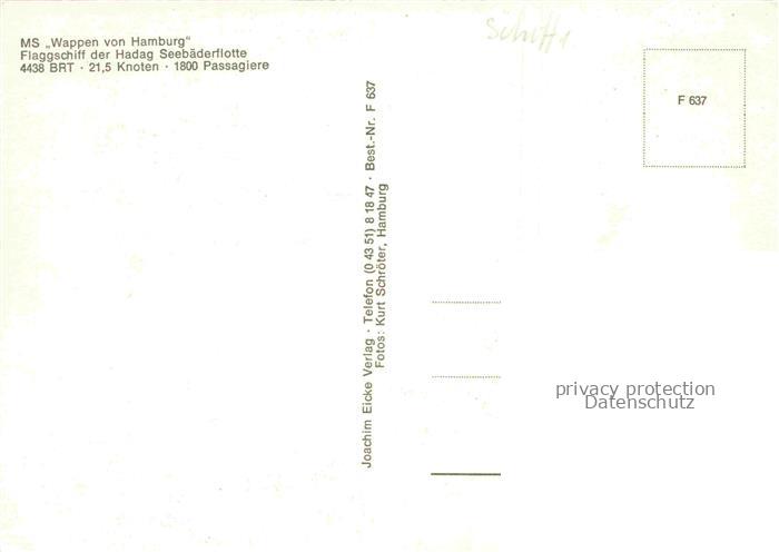 74052024 Schiffe Ships Navires MS Wappen von Hamburg 4438 BRT postalisch nicht gelaufen Erhaltung siehe scans [IrynaD87] KatCode: 22480000000800