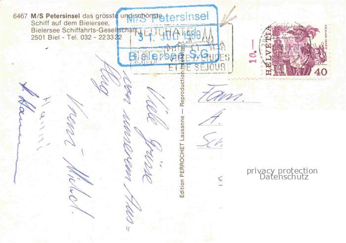 74050569 alte Postkarte Schiffe Ships Navires Petersinsel Bielersee Schweiz postalisch gelaufen Erhaltung siehe scans [SanaeD93] KatCode: 22480000000800
