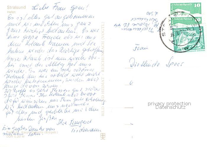 alte Postkarte Schiffe Ships Navires Stralsund Hafen postalisch gelaufen Erhaltung siehe scans [PaolaD17]