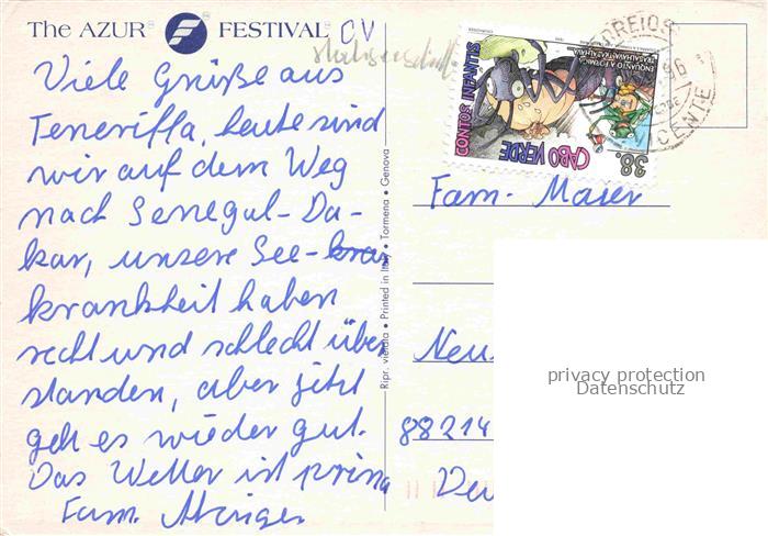 74052147 alte Postkarte Schiffe Ships Navires The Azur Festival postalisch gelaufen Erhaltung siehe scans [IrynaD87] KatCode: 22480000000800