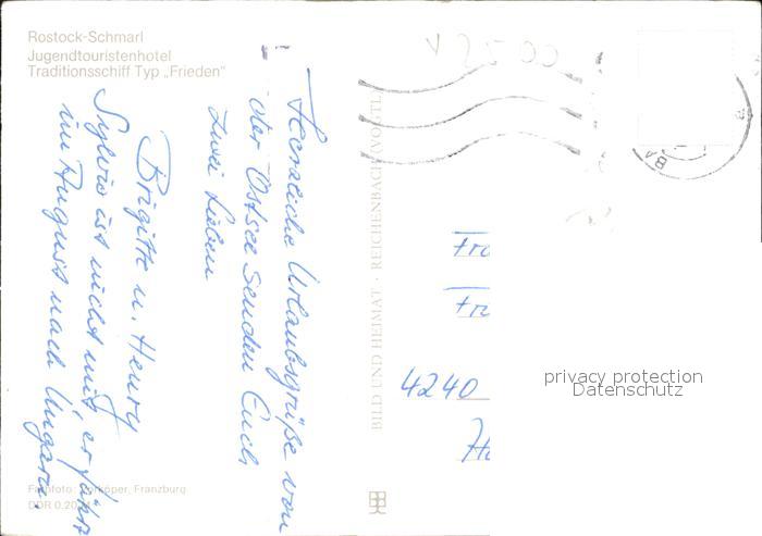 alte Postkarte Schiffe Ships Navires Traditionsschiff Typ Frieden Rostock-Schmarl postalisch gelaufen Erhaltung siehe scans