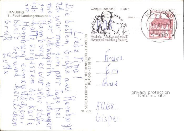 alte Postkarte Schiffe Ships Navires Wappen von Hamburg St. Pauli-Landungsbruecken postalisch gelaufen Erhaltung siehe scans
