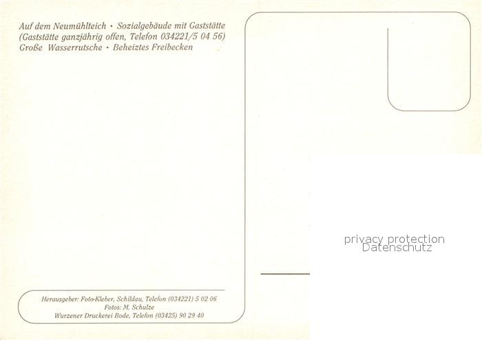 73652559 Schildau Neumuehlenteich Gaststaette Wasserrutsche Freibad postalisch nicht gelaufen Erhaltung siehe scans [WerneD78] KatCode: 11110014389260