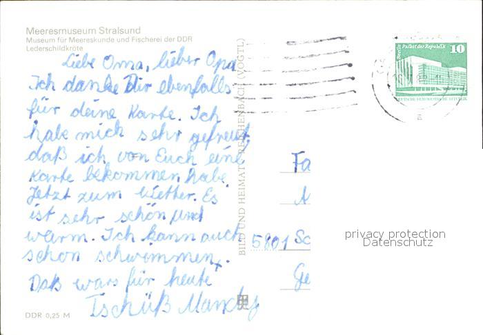 alte Postkarte Schildkroeten Lederschildkroete Meeresmuseum Stralsund postalisch gelaufen Erhaltung siehe scans