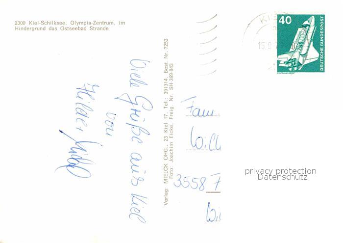 72823383 alte Postkarte Schilksee Olympia Zentrum Ostseebad Strande Fliegeraufnahme postalisch gelaufen Erhaltung siehe scans [FriedD77] KatCode: 11110001002000