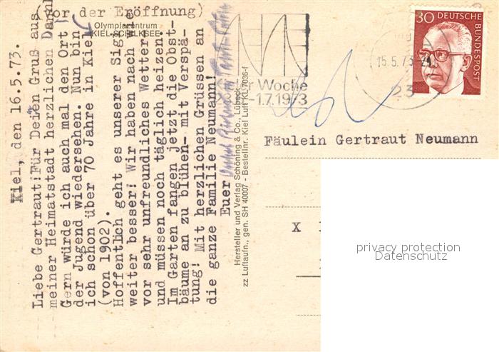73169656 alte Postkarte Schilksee Olympiazentrum Fliegeraufnahme postalisch gelaufen Erhaltung siehe scans [FriedD77] KatCode: 11110001002000