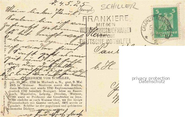 74033413 alte Postkarte SCHILLER Friedrich Dichter Weimar Marbach postalisch gelaufen Erhaltung siehe scans [SanaeD93] KatCode: 22400000001800