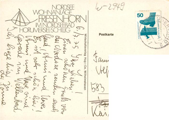 73914343 Schillig Horumersiel Nordseebad Nordsee Wohnanlage Friesenhoern postalisch gelaufen Erhaltung siehe scans [FriedD77] alte Postkarte Frie Katcode 11110003455020