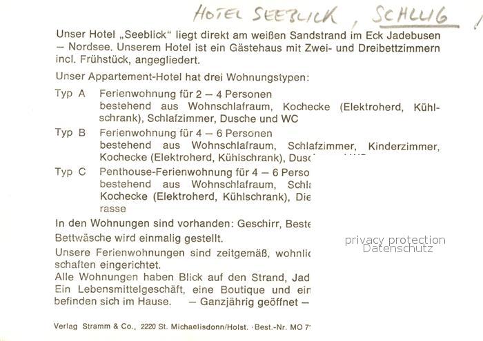 73086837 Schillig Hotel Seeblick postalisch nicht gelaufen Werbekarte (keine Postkarte) Erhaltung siehe scans [KathaD81] KatCode: 11110003455020