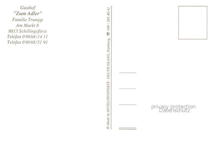 73759065 Schillingsfuerst Gasthof zum Adler Metzgerei postalisch nicht gelaufen Erhaltung siehe scans [WerneD78] KatCode: 11110009571198