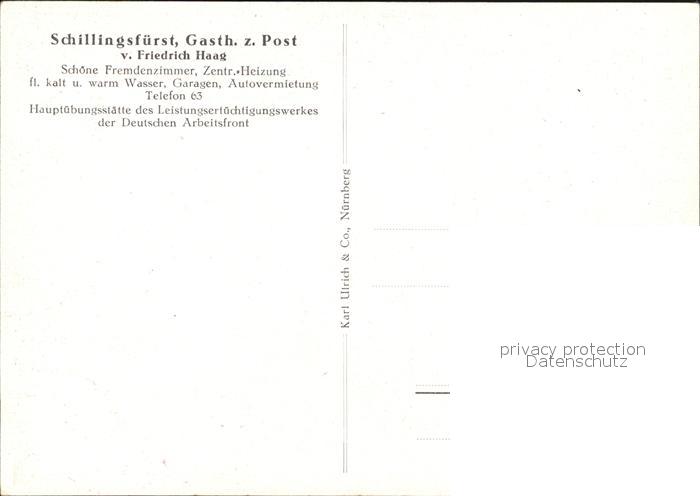 72538769 Schillingsfuerst Gasthof zur Post postalisch nicht gelaufen Erhaltung siehe scans [LiesaD40 kt120box] KatCode: 11110009571198