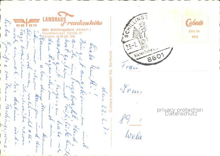 72126081 alte Postkarte Schillingsfuerst Landhaus Fraenkenhoehe postalisch gelaufen Erhaltung siehe scans KatCode: 11110009571198