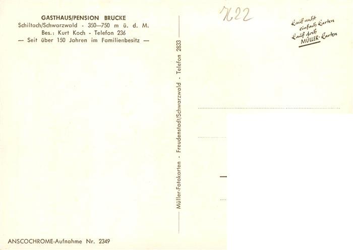 73930419 Schiltach Gasthaus Pension Bruecke Luftkurort im Schwarzwald postalisch nicht gelaufen Erhaltung siehe scans [FriedD77] KatCode: 11110008325051