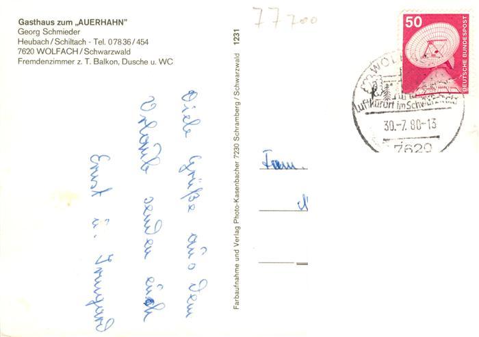 73897774 alte Postkarte Schiltach Gasthaus zum Auerhahn Pension postalisch gelaufen Erhaltung siehe scans [WerneD78] KatCode: 11110008325051