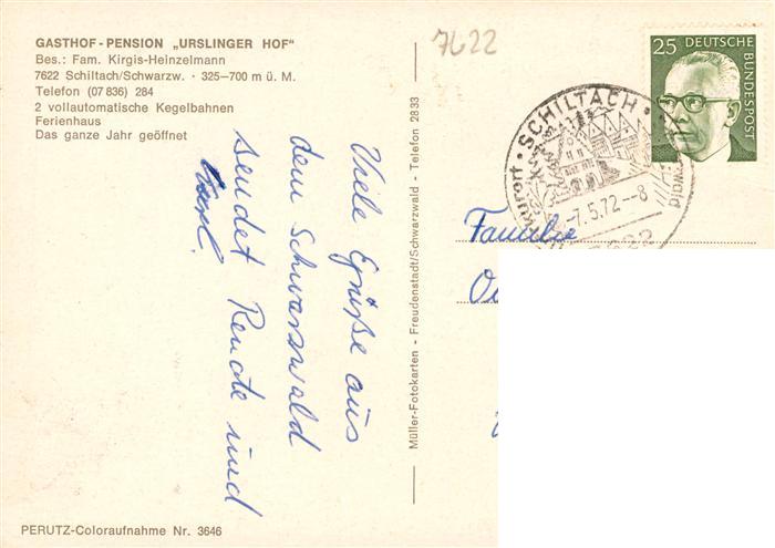 73930418 alte Postkarte Schiltach Gasthof Pension Urslinger Hof postalisch gelaufen Erhaltung siehe scans [FriedD77] KatCode: 11110008325051