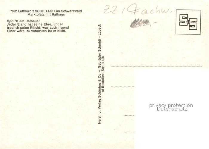 73190286 Schiltach Marktplatz Rathaus postalisch nicht gelaufen Erhaltung siehe scans [NatalD47] KatCode: 11110008325051