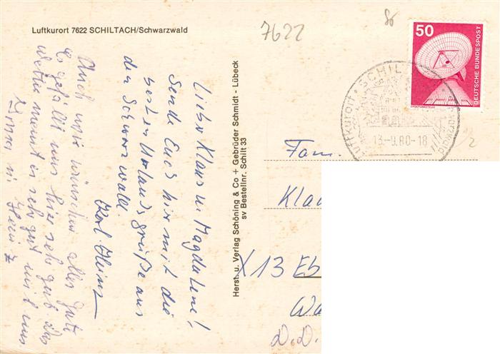 73930426 alte Postkarte Schiltach Panorama Luftkurort im Schwarzwald postalisch gelaufen Erhaltung siehe scans [FriedD77] KatCode: 11110008325051