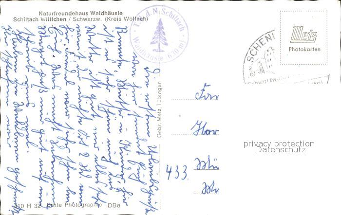72198560 alte Postkarte Schiltach Wittlichen Naturfreundehaus Waldhaeusle postalisch gelaufen Erhaltung siehe scans KatCode: 11110008325051