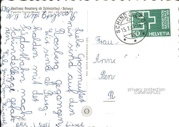 11643047 alte Postkarte Schindellegi Gasthaus Rossberg postalisch gelaufen Erhaltung siehe scans KatCode: 11470170485436
