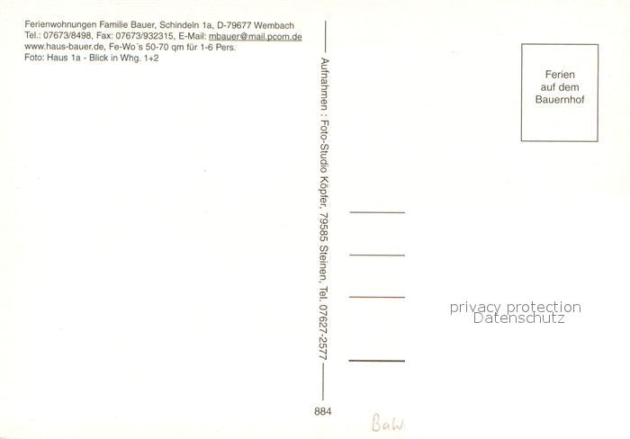 73644522 Schindeln Ferienwohnungen Haus Bauer Ferien auf dem Bauernhof Schwarzwald postalisch nicht gelaufen Erhaltung siehe scans [FriedD77] KatCode: 11110008336094