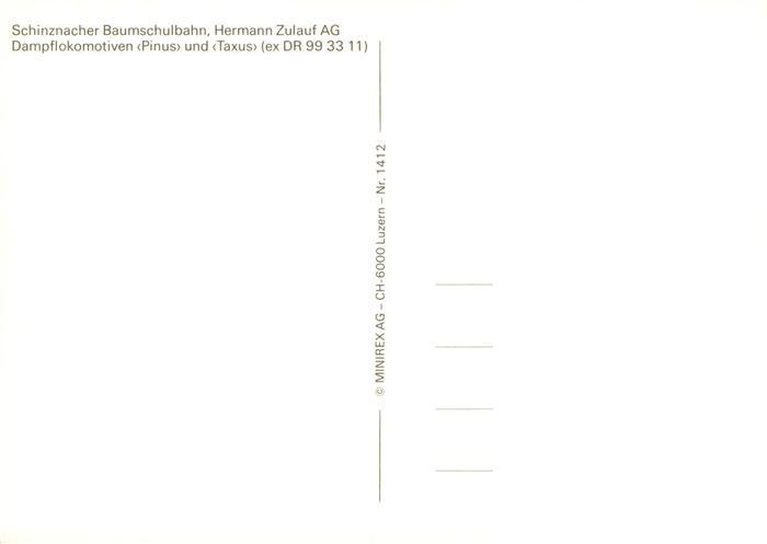 13901411 Schinznach Bad Schinznacher Baumschulbahn Dampflokomotiven Pinus und Taxus postalisch nicht gelaufen Erhaltung siehe scans [FriedD77] KatCode: 11470010020200