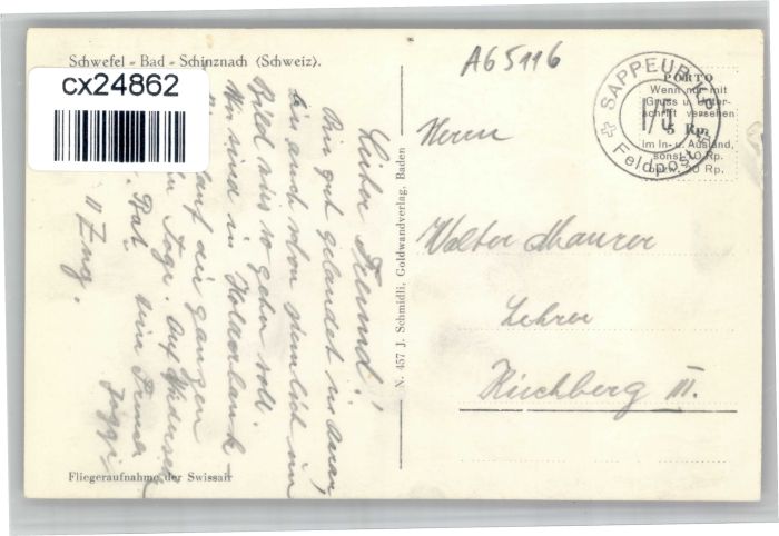 10753094 alte Postkarte Schinznach Dorf Fliegeraufnahme postalisch gelaufen KatCode: 11470010020204