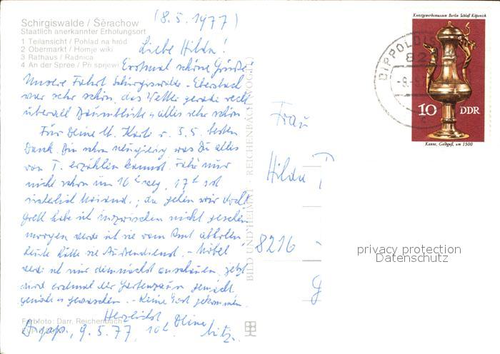 72416963 alte Postkarte Schirgiswalde Obermarkt Rathaus an der Spree postalisch gelaufen Erhaltung siehe scans KatCode: 11110014272320