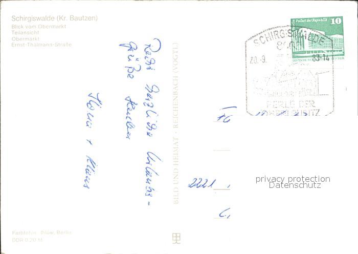72060102 alte Postkarte Schirgiswalde ObermarktErnst-Thalmann-Strasse postalisch gelaufen Erhaltung siehe scans KatCode: 11110014272320