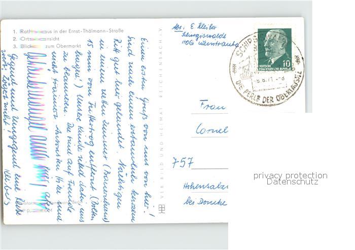 72412691 alte Postkarte Schirgiswalde Rathaus Ernst Thaelmann Strasse Ortsansicht Obermarkt postalisch gelaufen Erhaltung siehe scans KatCode: 11110014272320