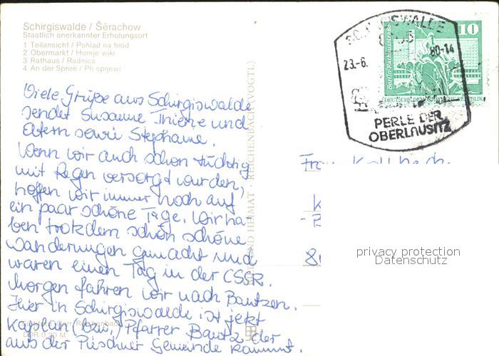 72368774 alte Postkarte Schirgiswalde Teilansicht Obermarkt Rathaus An der Spree postalisch gelaufen Erhaltung siehe scans KatCode: 11110014272320