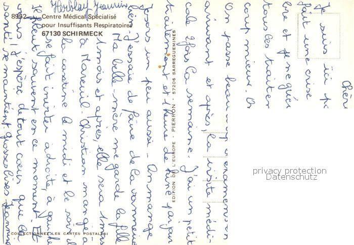 Schirmeck Centre Médical Spécialisé pour Insuffisants Respiratoires postalisch nicht gelaufen Erhaltung siehe scans [FriedD77]