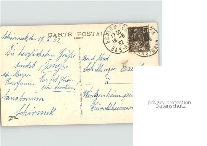 11719597 carte postale Schirmeck Sanatorium postalisch gelaufen Erhaltung siehe scans KatCode: 11170067367448
