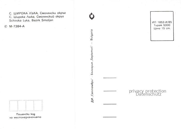 74040616 Schiroka Lyka Shiroka Laka BG Bezirk Smoljan postalisch nicht gelaufen Erhaltung siehe scans [IrynaD87] KatCode: 11090