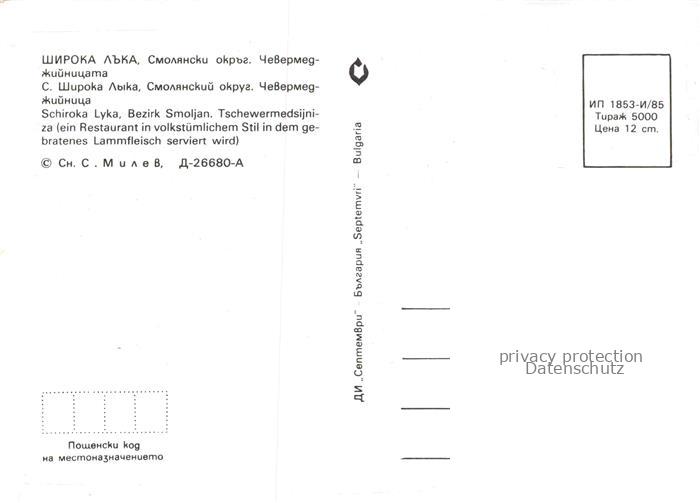 74040618 Schiroka Lyka Shiroka Laka BG Smoljan Tschewermedsijniza Restaurant postalisch nicht gelaufen Erhaltung siehe scans [IrynaD87] KatCode: 11090
