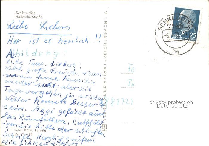 72131615 alte Postkarte Schkeuditz Hallesche Strasse postalisch gelaufen Erhaltung siehe scans KatCode: 11110014374315