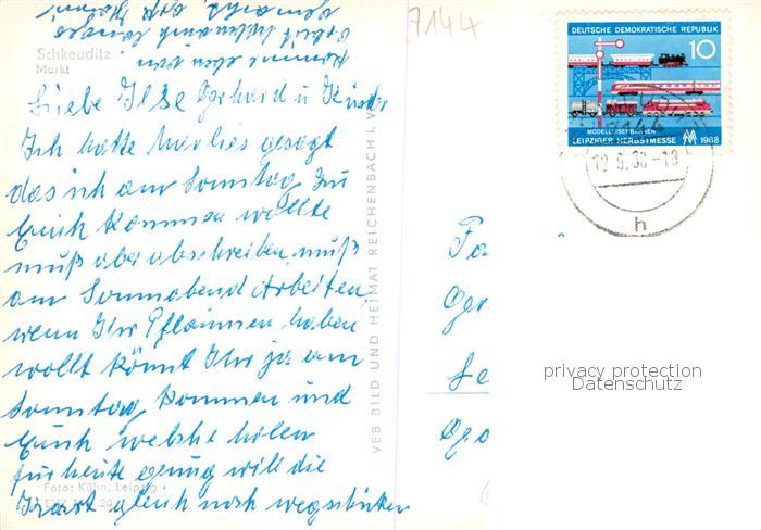 73853927 alte Postkarte Schkeuditz Markt Brunnen postalisch gelaufen Erhaltung siehe scans [WerneD78] KatCode: 11110014374315